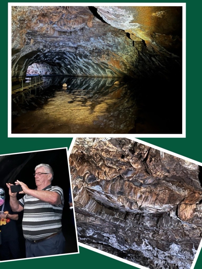 There is still water in the tube and has submerged the walkway but we can get our feet wet and amazing how refreshing it is not as cold as I thought it would be. The water is clear and we are amazed at the root of a tree winding under the water. We had a photo taken and amazed when we view our photos there is an extra person Ha ha!!!