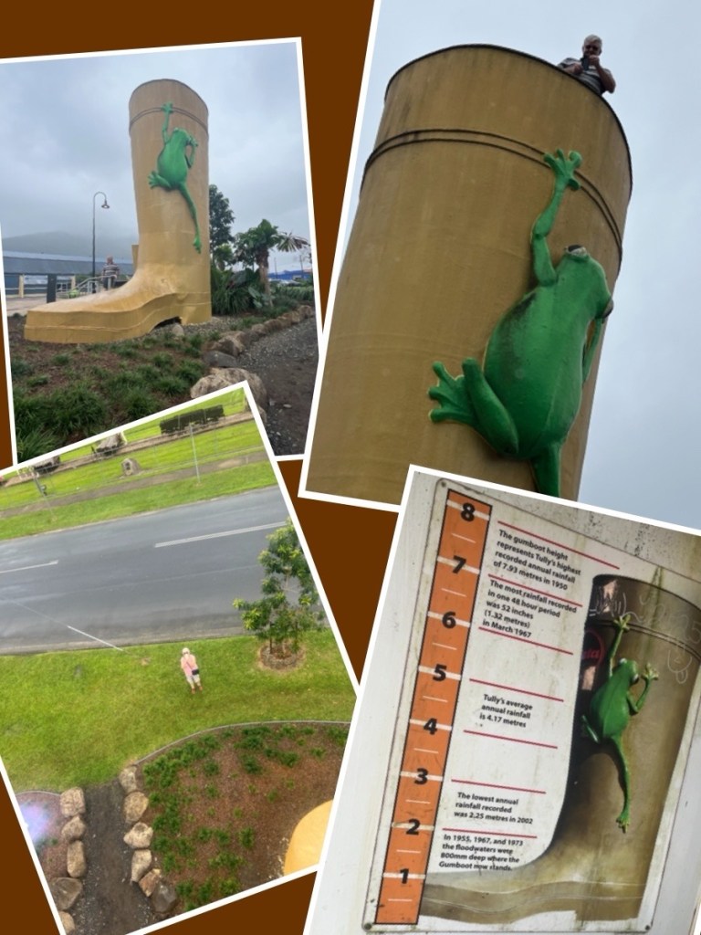 The gumboot height is 7.93 metres high, and erected because it has the highest rainfall in Australia and you need gumboots to walk around.