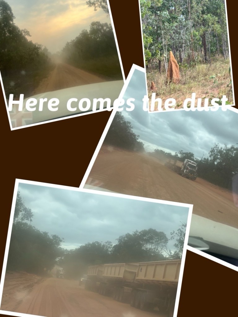 We travel on dirt roads and had a film of us going through our first bull dust and now we have a good coating of red dust.
