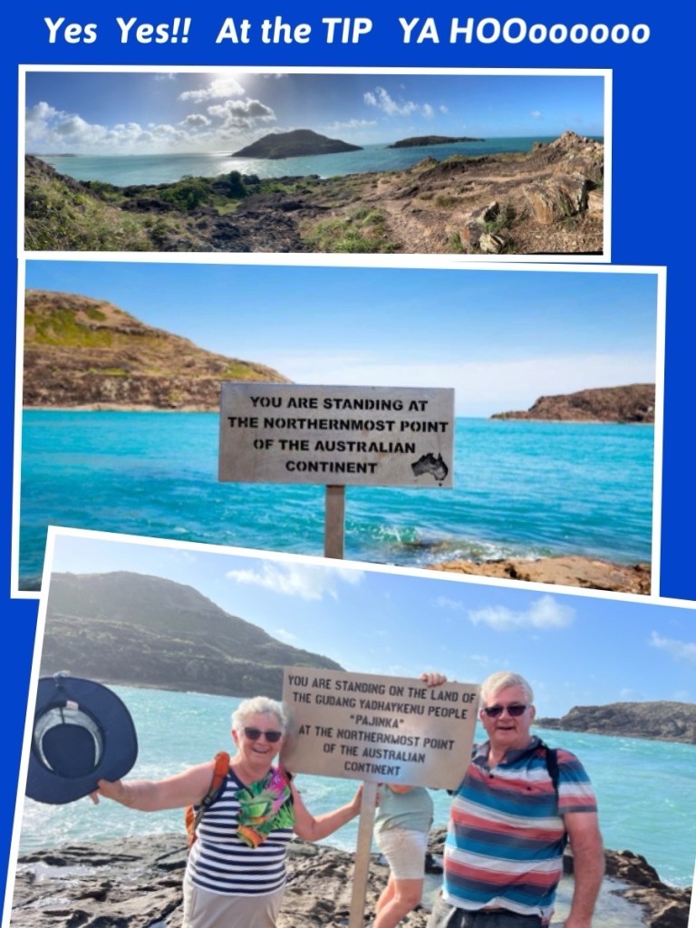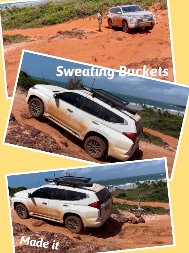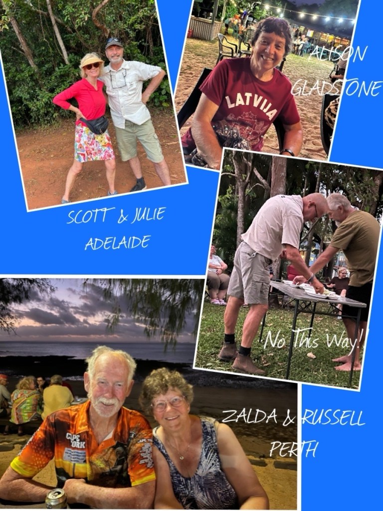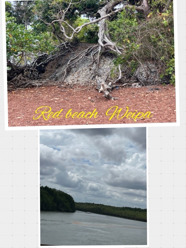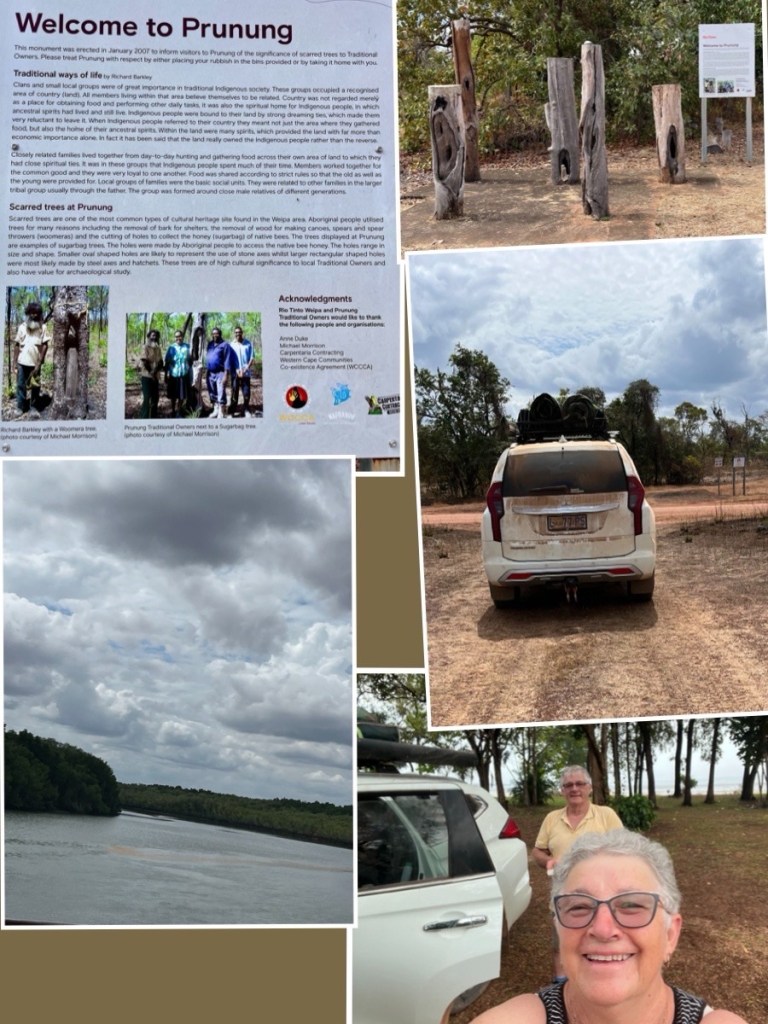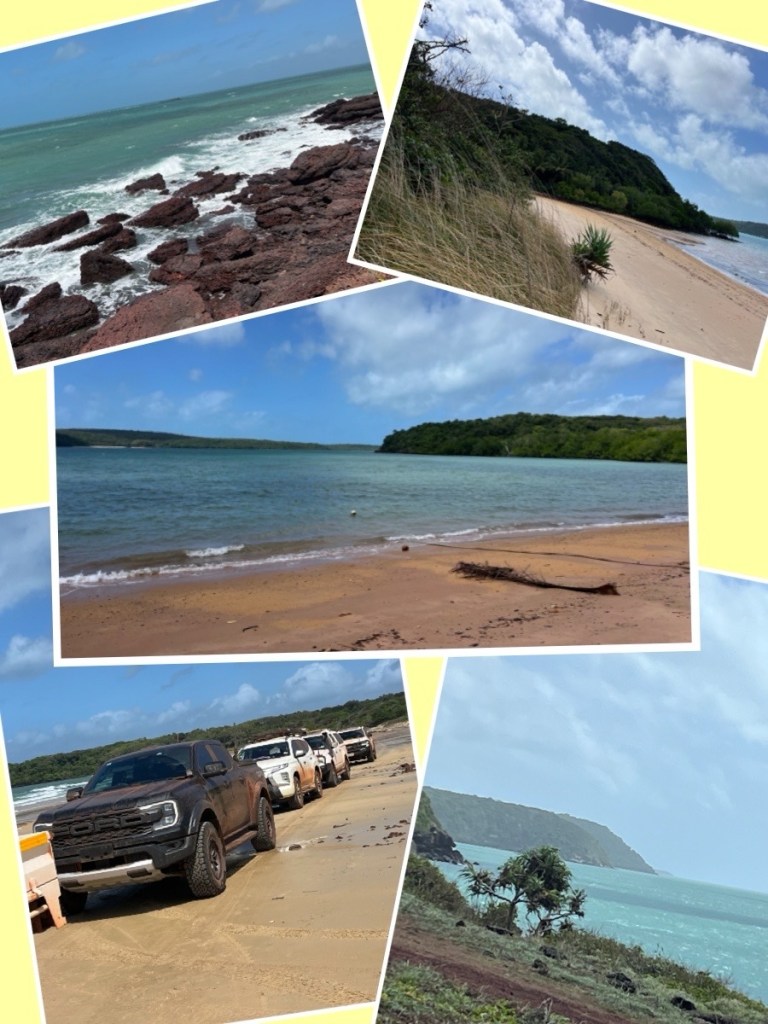 Fog this morning to start our day. Weipa today traversing over first road bitumen, arriving at Weipa,took a tour of the town and Mark pointing points of interest like the supermarket, lunch at Red Beach explaining how Bauxite is mined and the trees that are important to the 1st nation are kept and then replaced in the exact spot after the bauxite has been mined.