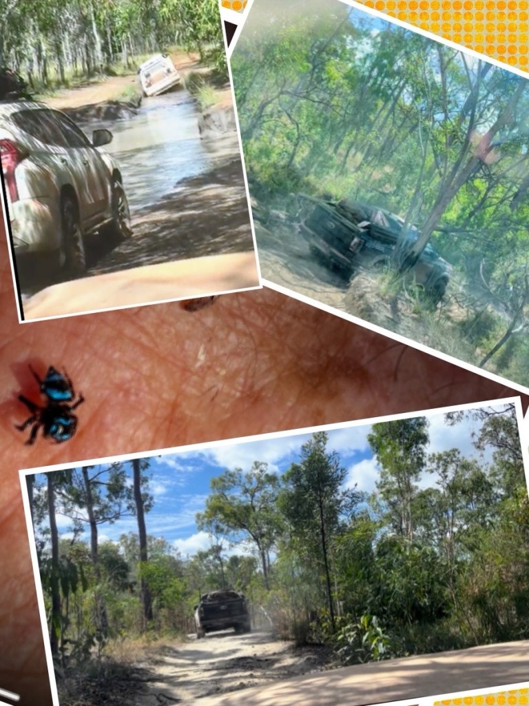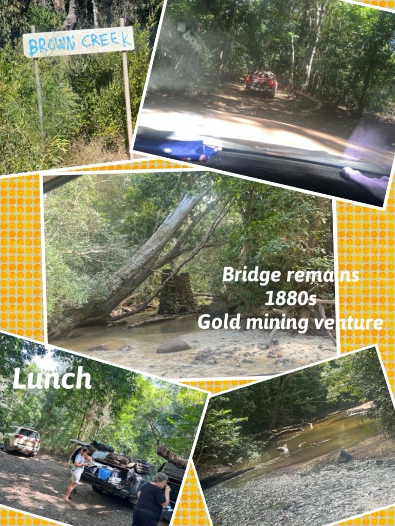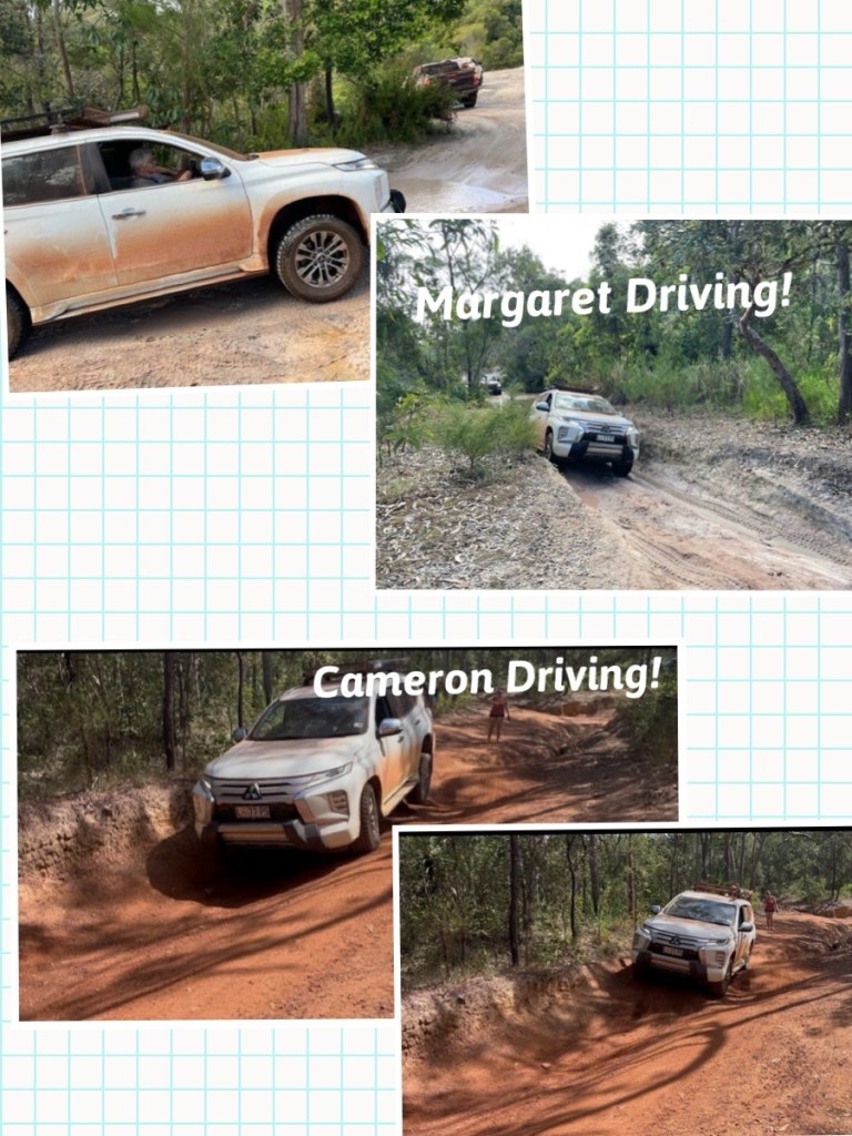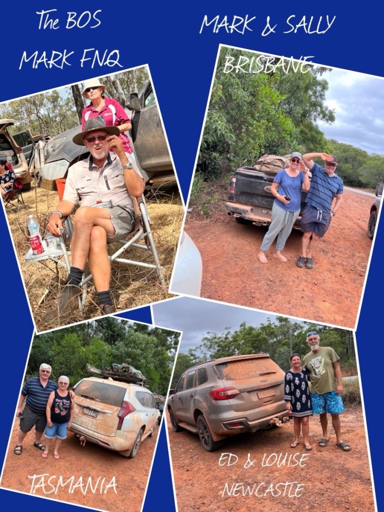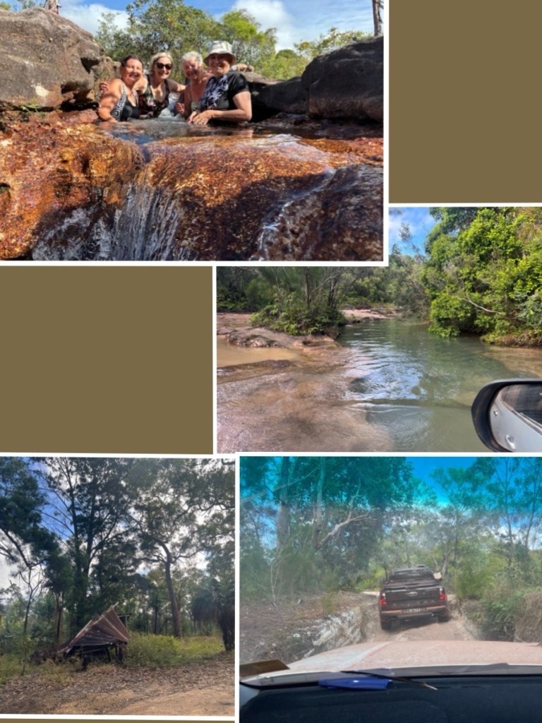 As our caravan is at Walkamin which is 76 kms from Cairns and through the mountains, more convenient we are meeting the rest of the group in Mareeba, ends up there are 3 cars waiting for the trip. 9:30am and the cars are all pulling in with a rush for the loo and then Mark our tour guide introduces himself and the rest of us to the other 6 cars waiting. There will nine 4 wheel drives and the tour guide so 10 car convoy, 18 people plus the guide.. We are handed a list of the cars and we are staying in that order for the whole trip. Gaylene & Jonesy, Scott & Julie, Louise & Ed, Peter, Hanna & Ela, Kevin & Leann, Alison, Zelda & Russell (Raptor 1) Mark & Sally (Raptor 2) & Us.