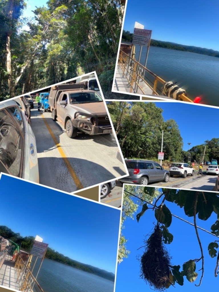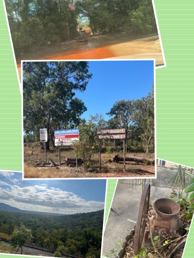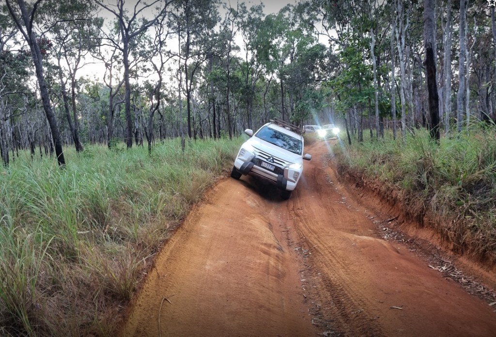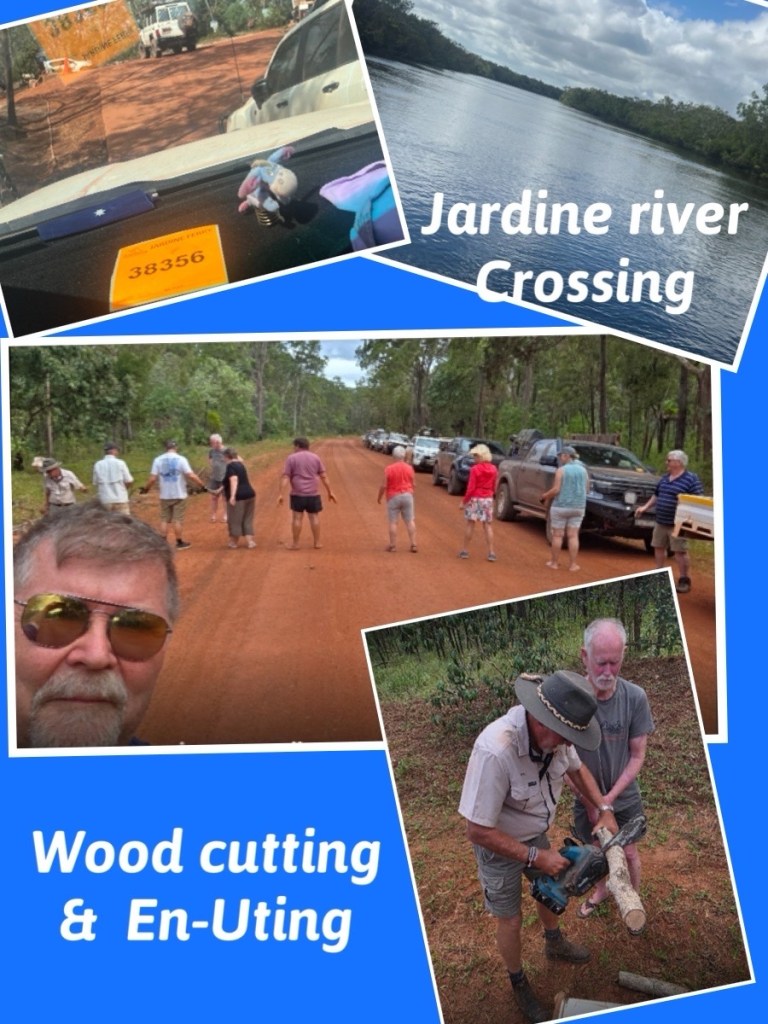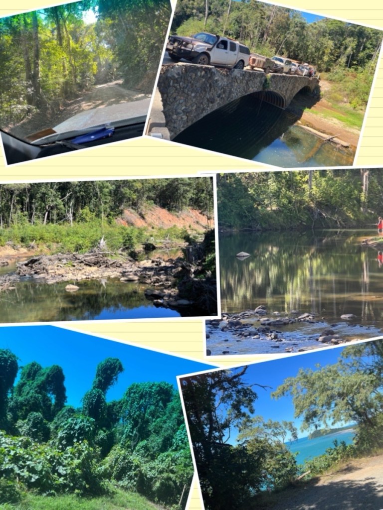As our caravan is at Walkamin which is 76 kms from Cairns and through the mountains, more convenient we are meeting the rest of the group in Mareeba, ends up there are 3 cars waiting for the trip. 9:30am and the cars are all pulling in with a rush for the loo and then Mark our tour guide introduces himself and the rest of us to the other 6 cars waiting. There will nine 4 wheel drives and the tour guide so 10 car convoy, 18 people plus the guide.. We are handed a list of the cars and we are staying in that order for the whole trip. Gaylene & Jonesy, Scott & Julie, Louise & Ed, Peter, Hanna & Ela, Kevin & Leann, Alison, Zelda & Russell (Raptor 1) Mark & Sally (Raptor 2) & Us.