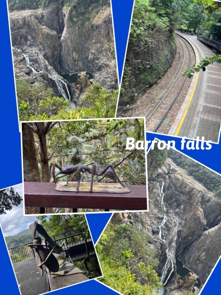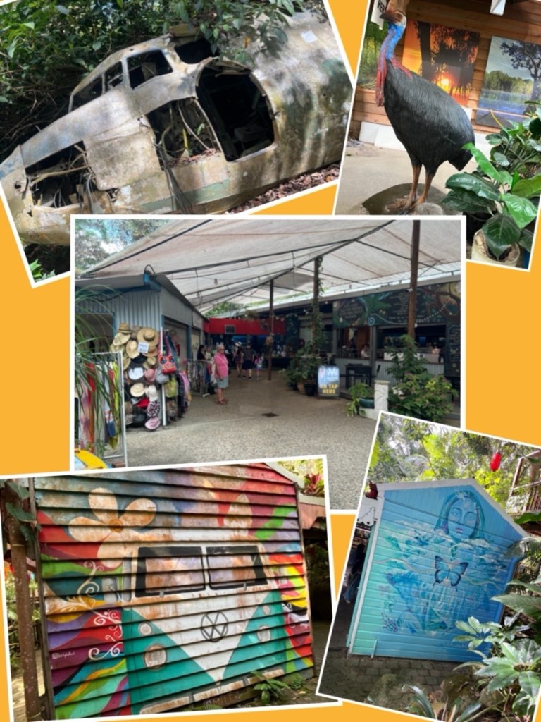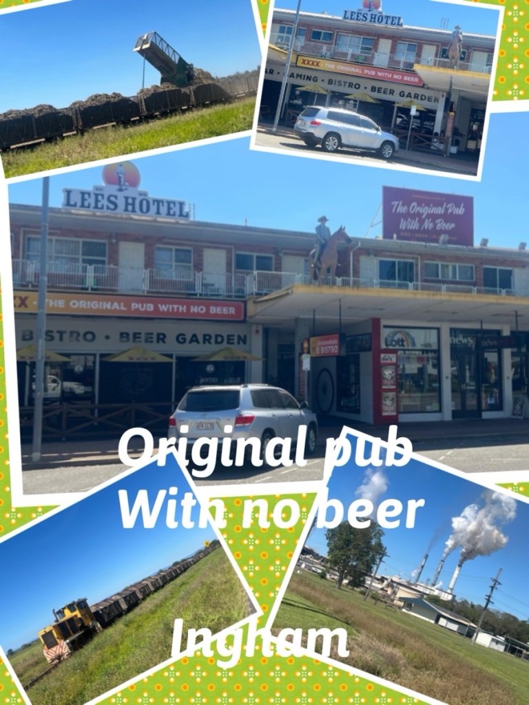 Cameron’s attempt at selfies!Tully’s Sugar cane mill working as season is warming up.Open air laundry, hotel(of course) all open to the weather, and the bakery where we had lunch and very nice it was.Tully’s Big Boot