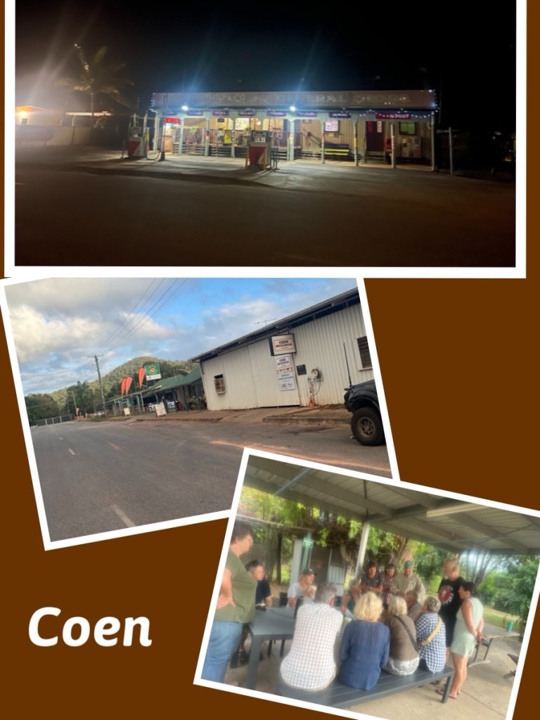 Next stop was the Lakeland Roadhouse where we had photos taken of the loo’s quite unique. The Gateway to Cape York and a walk through there interactive displays. Quite impressive as this is where we are heading. A visit to the Lakeland local store for some much needed coffees for the addicts.