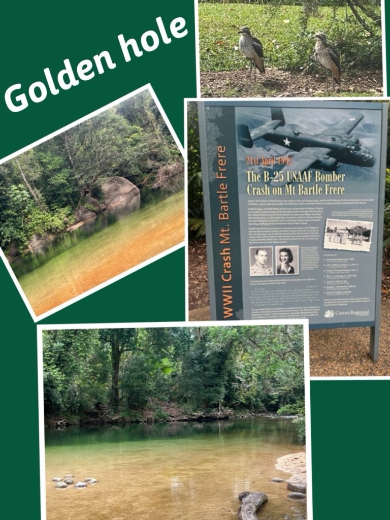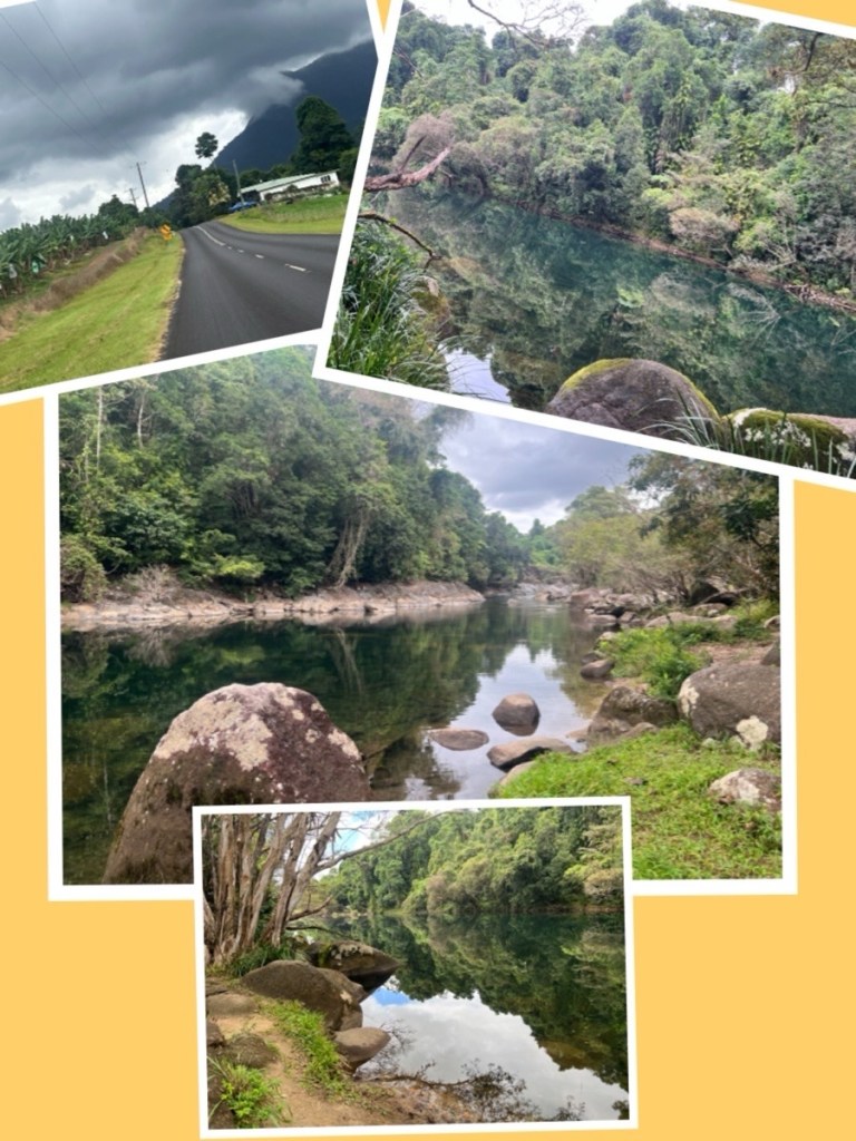 We travel around Babinda and we first visit Golden Hole a beautiful water course which you cannot swim in.