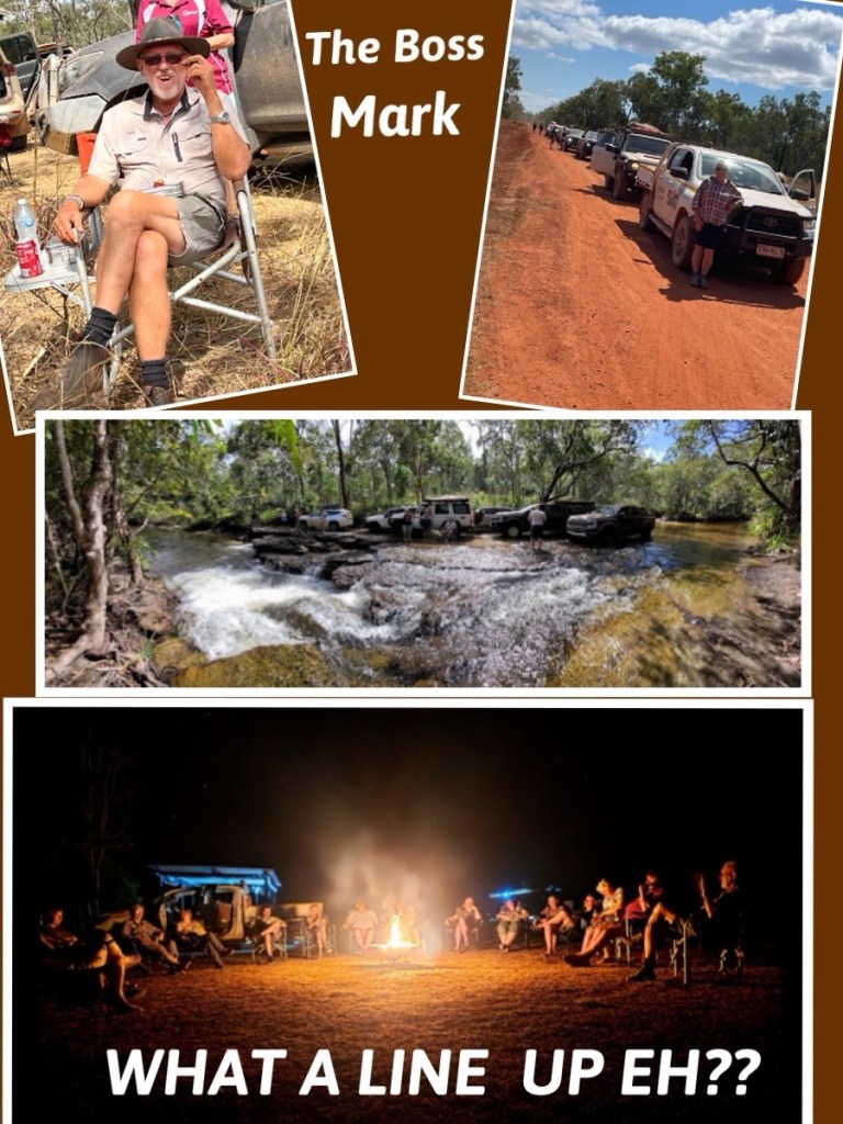 Up nice and early as not sure how much time it will take to pack up, breakfast and all by 8am sharp for Toolbox meeting at the bonnet of the Mark, the tour guide’s Ute, a map is spread out and told where we are going and what to expect, for example how much dirt, bitumen and road conditions, then on the road by 8:15am Ha! Ha!