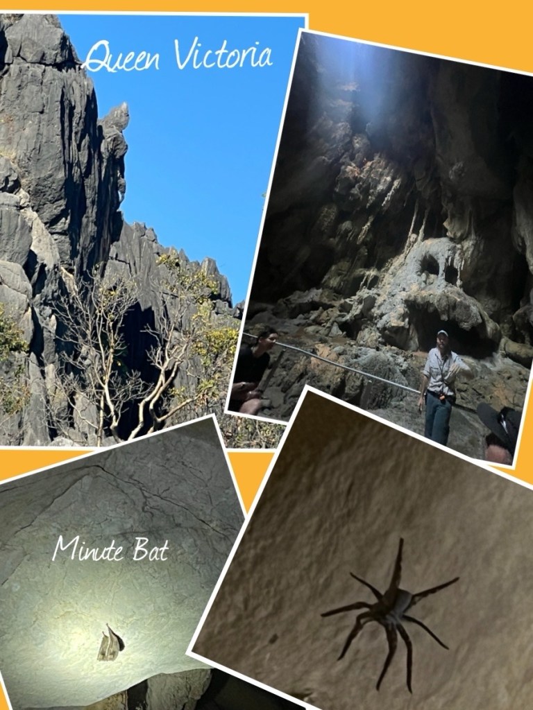 Absolutely amazing and so many photos to try and show how amazing they are. We are visiting the Royal Arch caves so named after Queen Victoria, whose head is a rock formation near the entrance to the caves. “Limestone has been weathered, dissolved and reformed by water to create spectacular caverns and passages, decorated by secondary deposits, including stalagmites and flowstones.” We get to see micro bats and and spiders, and thankfully no snakes which frequent these caves.