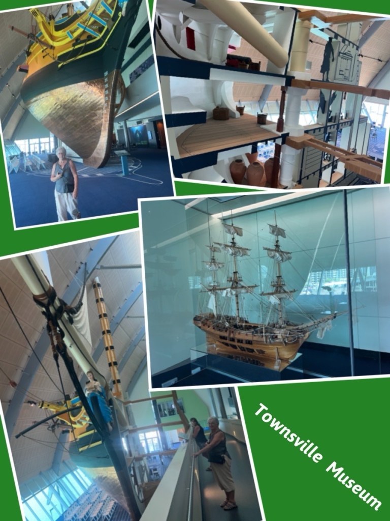 The hull and replicas of the Pandora.Lunch and landscapes of Townsville.