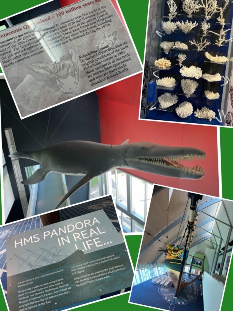A visit to the museum and we learn about the Pandora and the box. A replica of the ships hull and then a model of ship on display. Imagine being on the ships for months. Was amazed at the crocks that were used for their food, must have been so heavy so weight on the ship would have been massive.