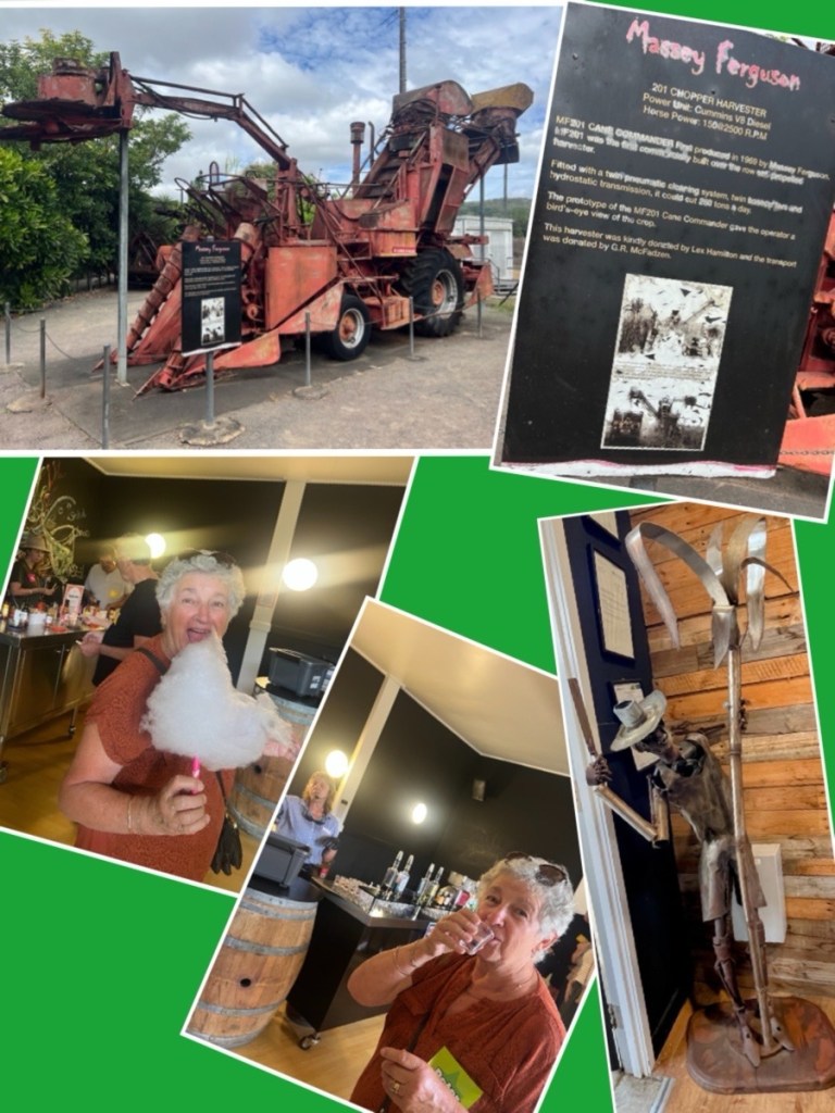 We hadn’t even had a drink!!Tour included the old machinery used in days passed.Fairy Floss and sipping of the liqueurs… Notice the crocodile above the sign.Rockhampton Queensland and Wycheproof Victoria (Margarets birth place) are the only two towns that have working train lines down the Main Street.