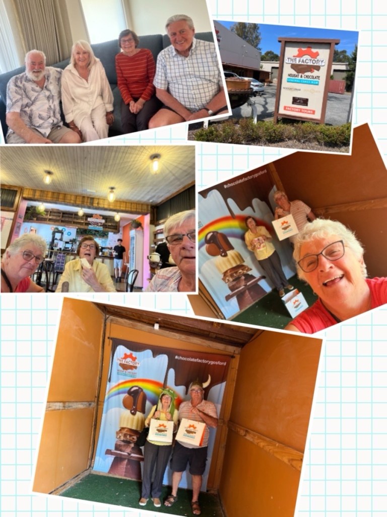 Lunch with Colin’s twin sister Christine and her husband Malcom. A lovely catch up. Lunch next day chocolate factory and dressing up for photos.