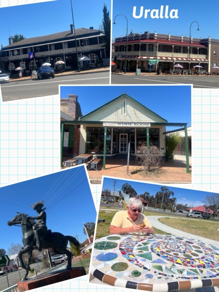 Uralla for lunch next day and Margaret got to visit the Wool Room and naturally a purchase was made. lunch at a beautiful mosaic table.