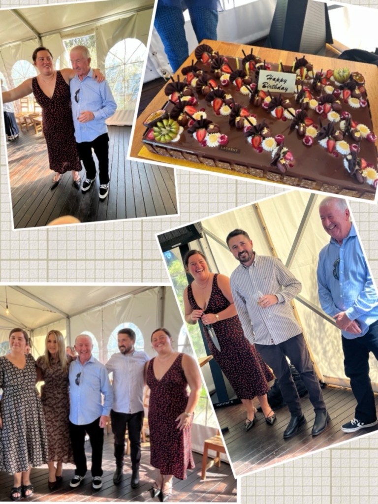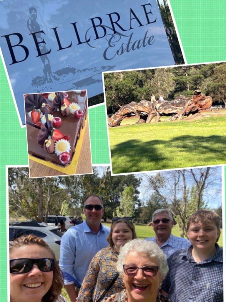 Bellbrae Estate is the venue and what a day! The weather is perfect and venue is excellent. Great food and company. Victoria Matthew Riley & Marlie have made the trek over for the birthday & football, but with a bad start not leaving Tassie till 4 am due to ship turn around for maternity emergency. Arriving in Geelong 2pm. A long two days for them but lovely to have them here.